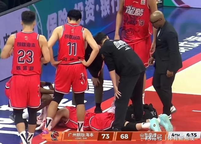 就在不久前结束的广州队主场对阵山东队的比赛里,广州队以93 - 85的比分成功击败对手。可谁能想到,在这场比赛进行到末节时,郭艾伦持球快速发起反击,在激烈的对抗后突然受伤,整个人直挺挺地倒在了地上。随后,他直接被担架抬出了场外,接受紧急治疗。