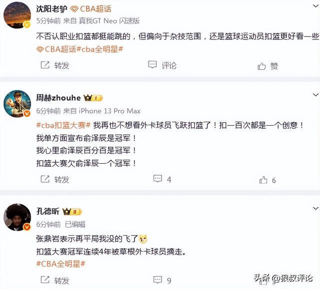 媒体人“周赫”发文点评我再也不想看外卡球员飞跃扣篮了!扣一百次都是一个创意!